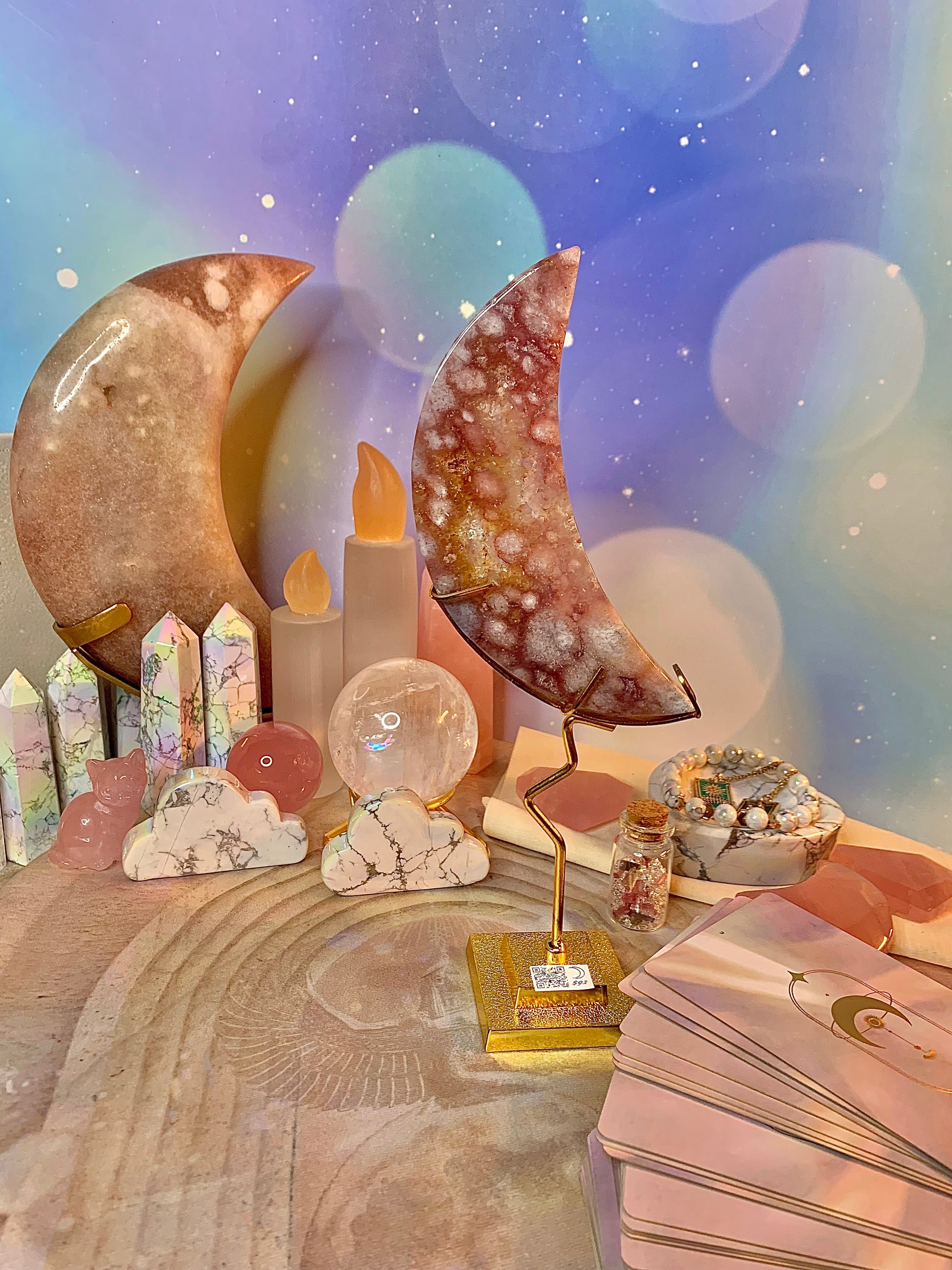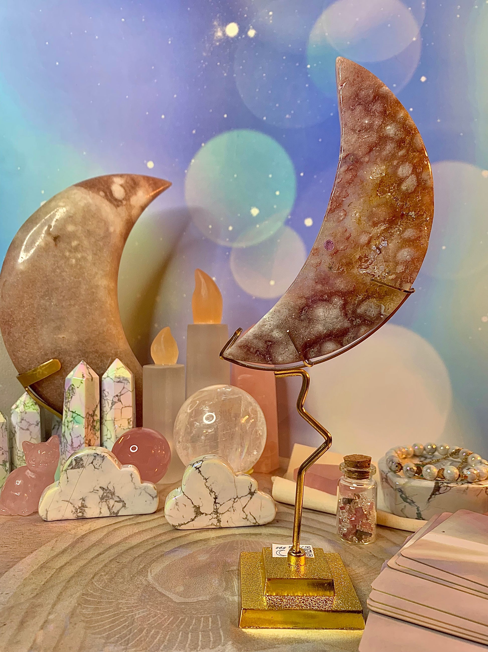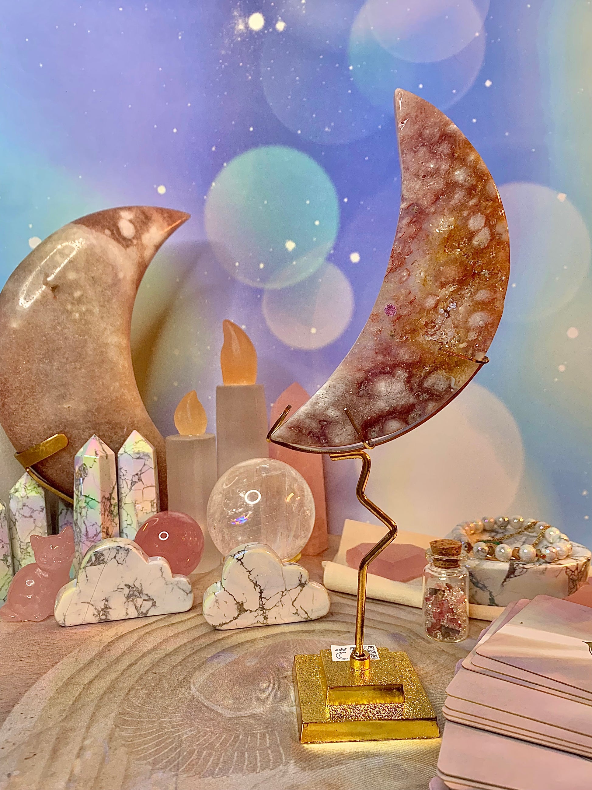 Pink Amethyst Crescent 🌙 Moon on Stand