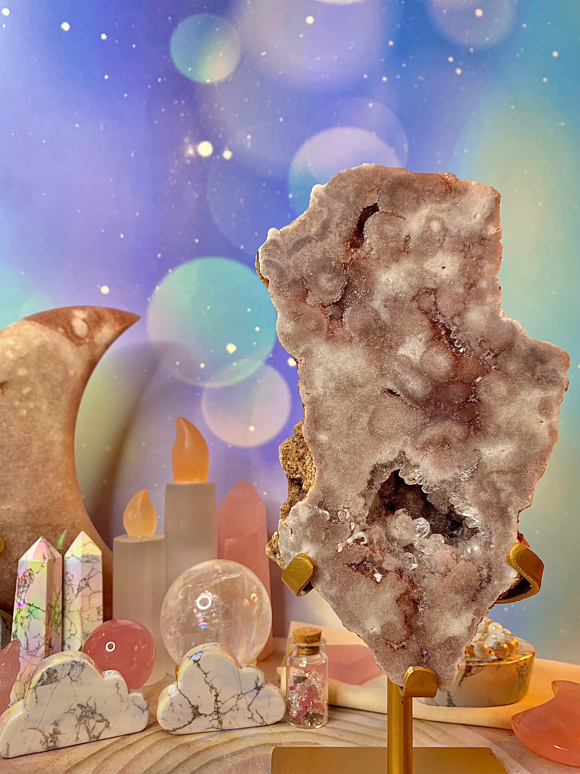Pink Amethyst Slice Free Form On Stand
