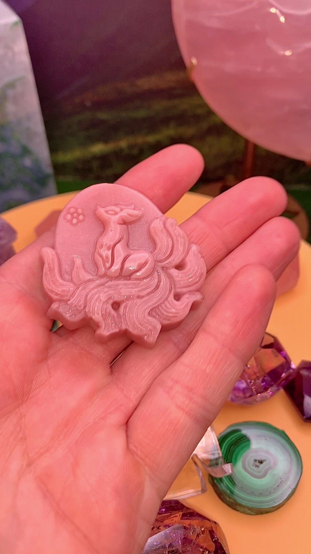 Pink Opal 9-Tailed Fox Carving 🦊