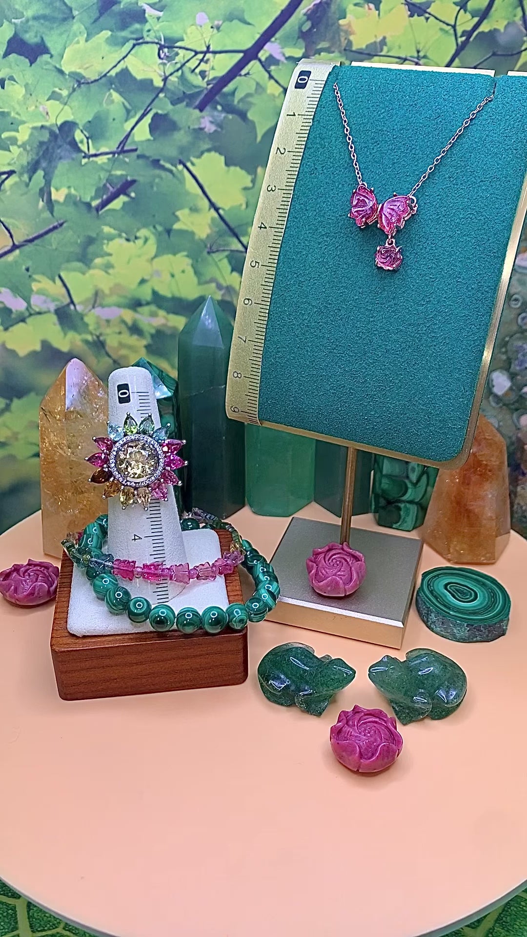 Pink Tourmaline Butterfly 🦋 with Pink Tourmaline Dangling Flower 🌸