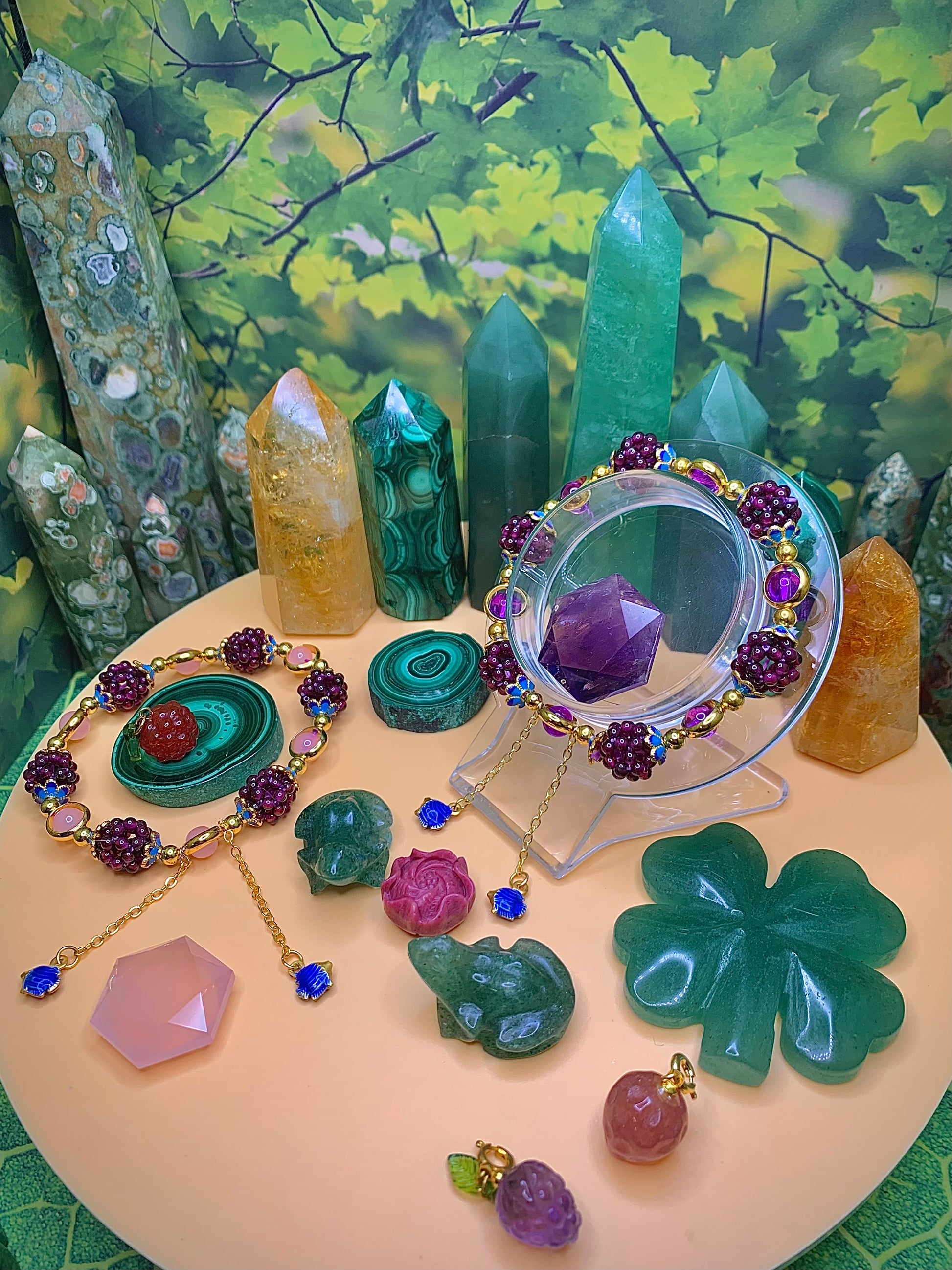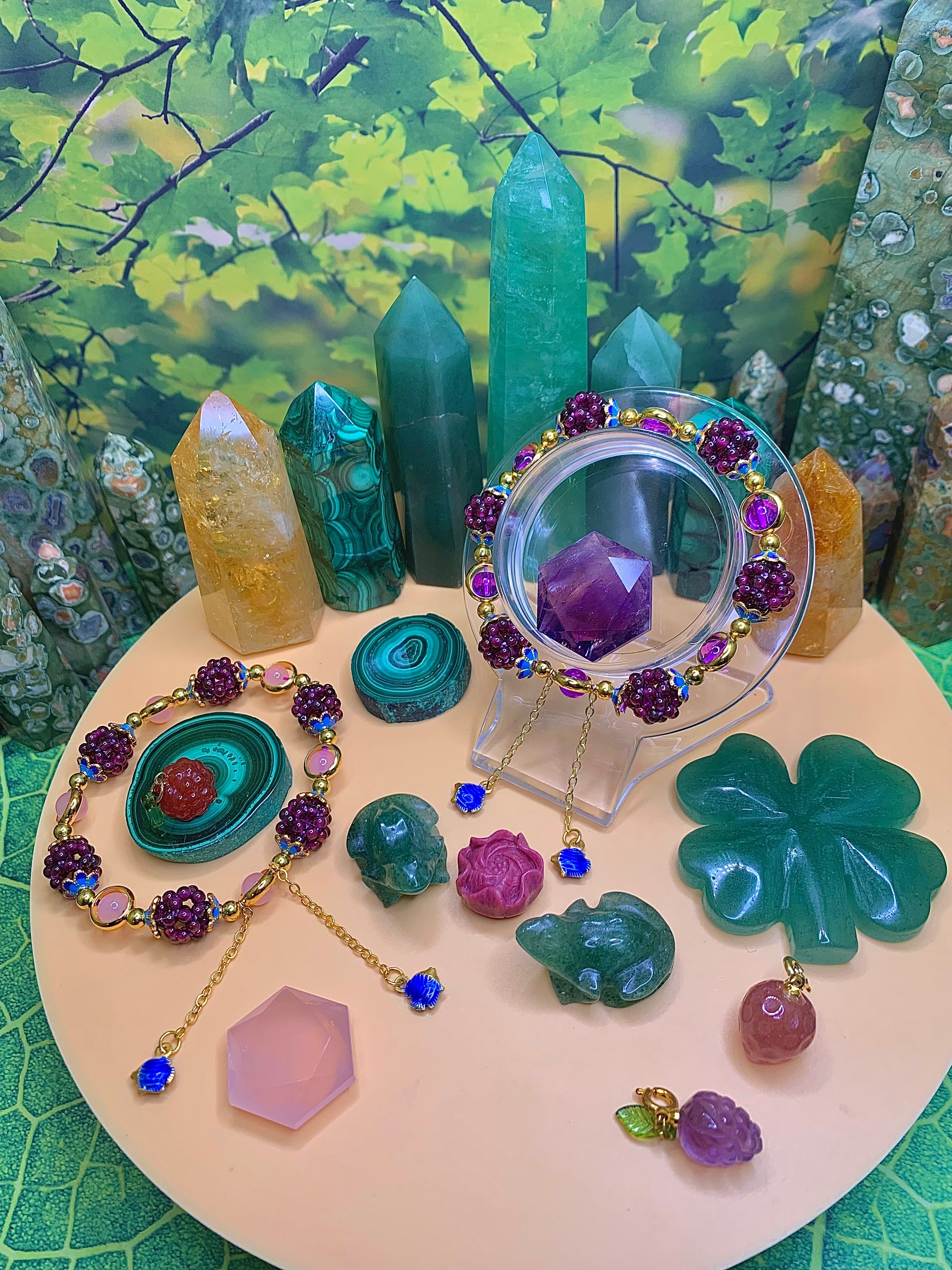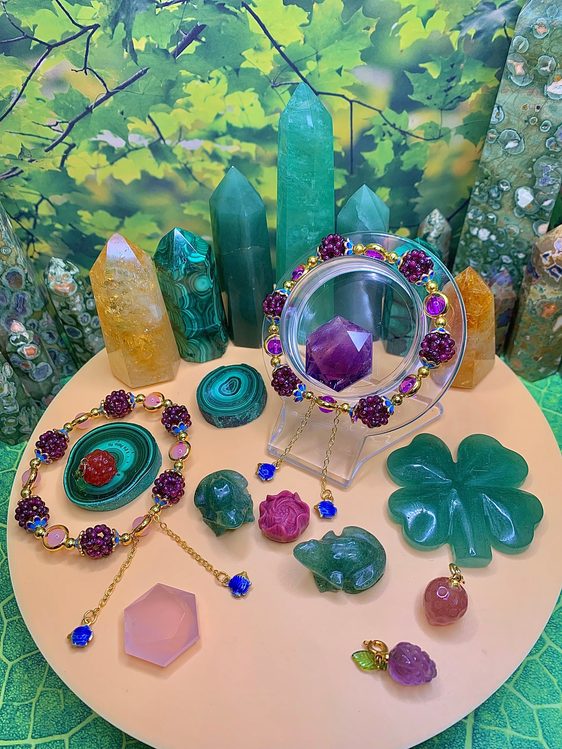 Purple Garnet Berry Bracelet With Purple Chalcedony and Gold Colored Accents