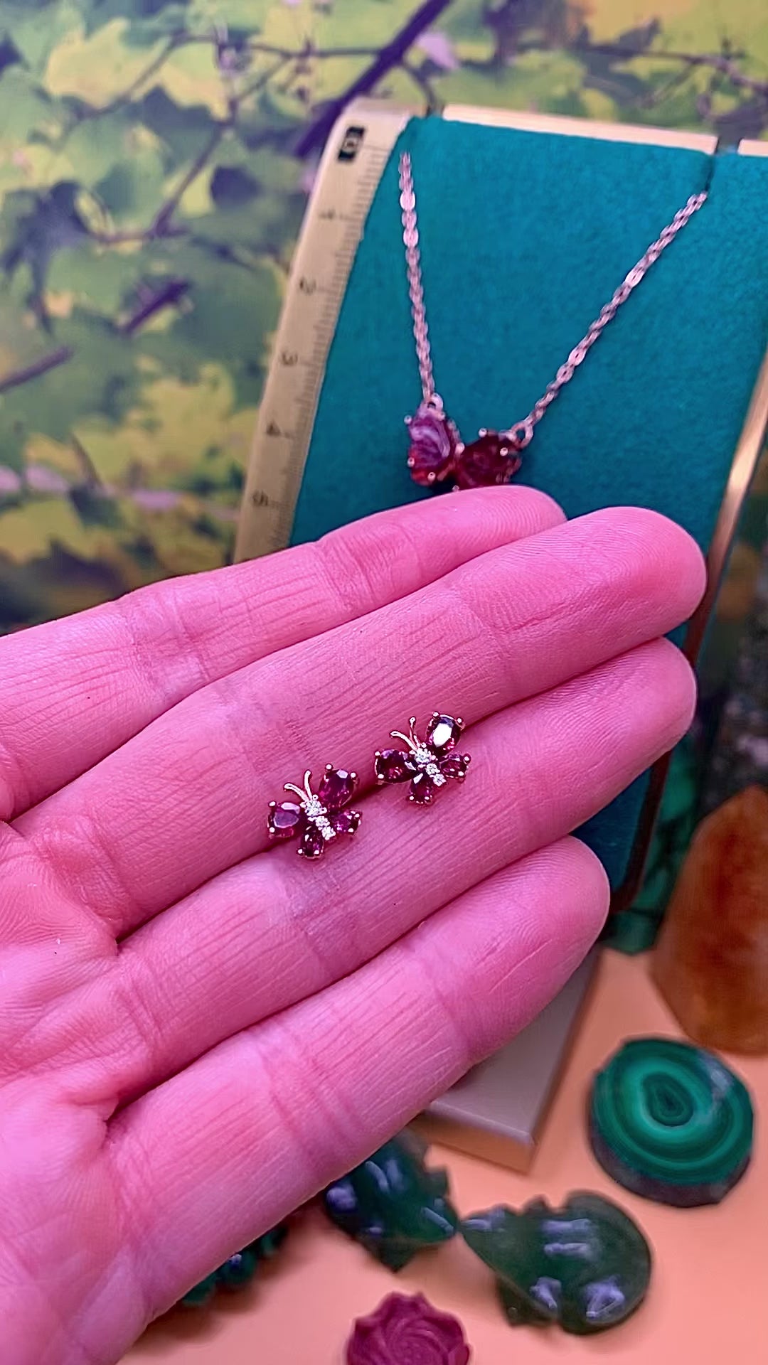 Purple Garnet Butterfly 🦋 Stud Earrings with Rose Gold Plating