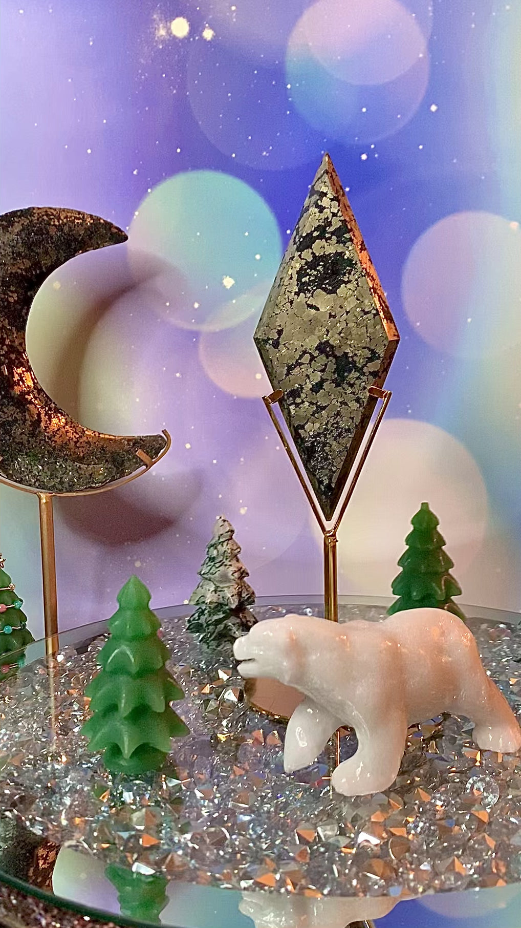 Pyrite Diamond in Quartz on Stand