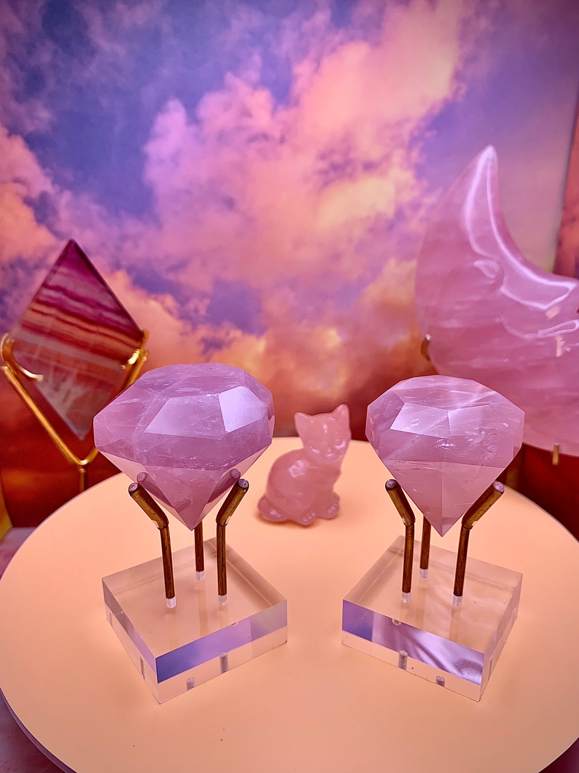 ย This listing is for the larger of the two Rose Quartz Diamonds ๐ pictured on left. They do not come with these stands but I can provide a small plastic stand if needed.ย