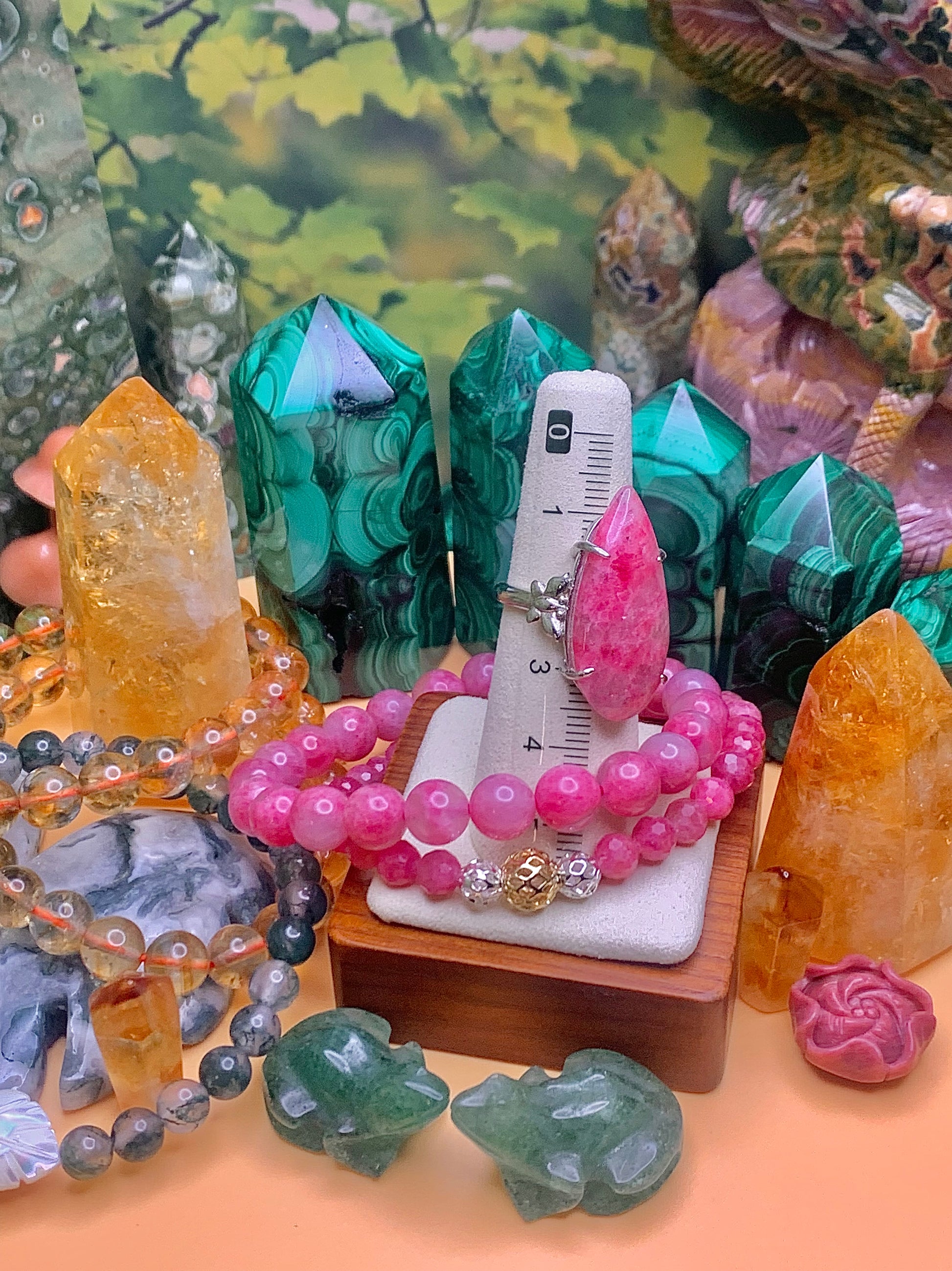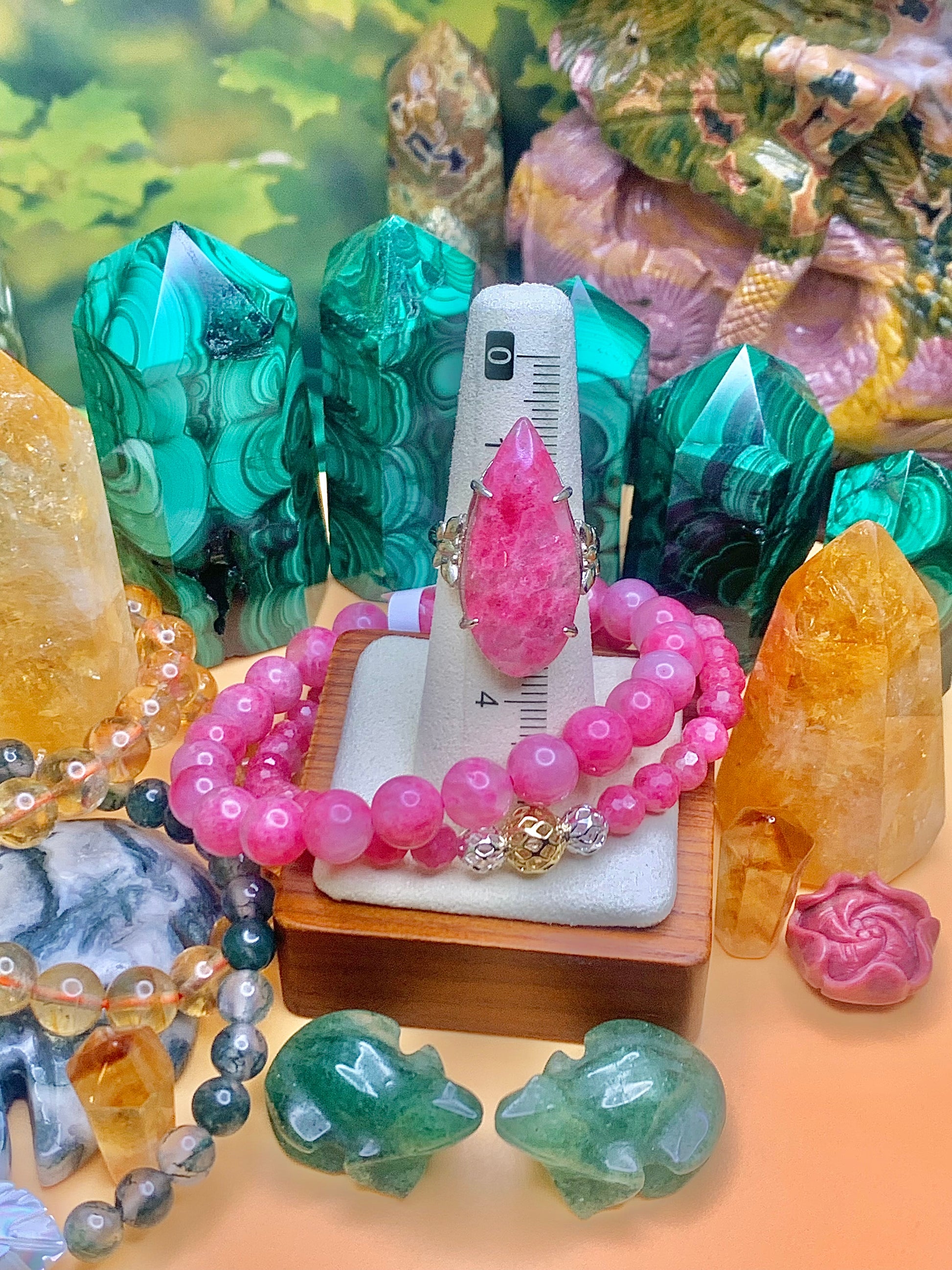 Sakura Rain Rhodonite Teardrop Cabochon Ring set in Sterling Silver