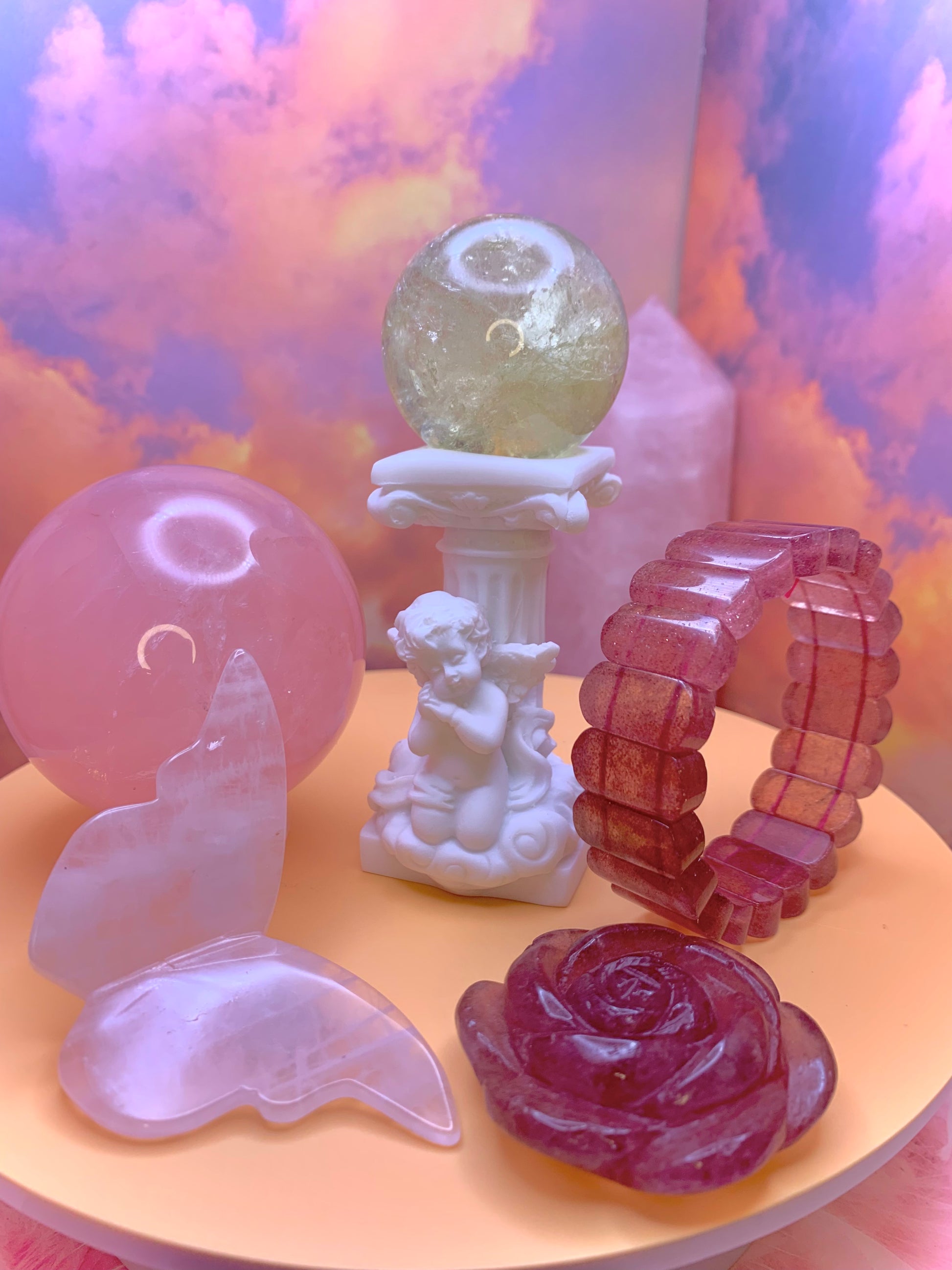 Strawberry Quartz is an uplifting, joyous stone that allows us to celebrate the gift that is life. It embodies the energies of compassion and kindness and inspires self healing and self nurturing by promoting a powerful bond and connection to the universe & Divine realm. It soothes emotions while providing strength through positive & grounding energies.