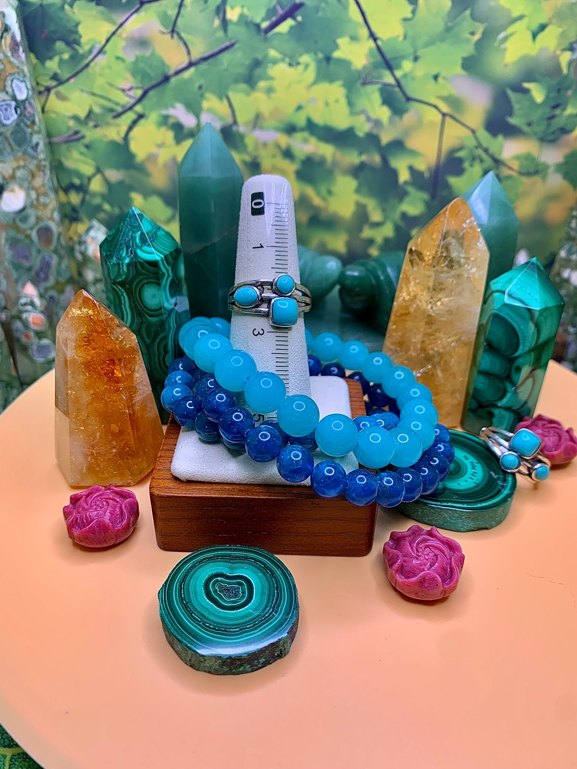 Turquoise Triple Stone Cabochon Ring Set in Sterling Silver
