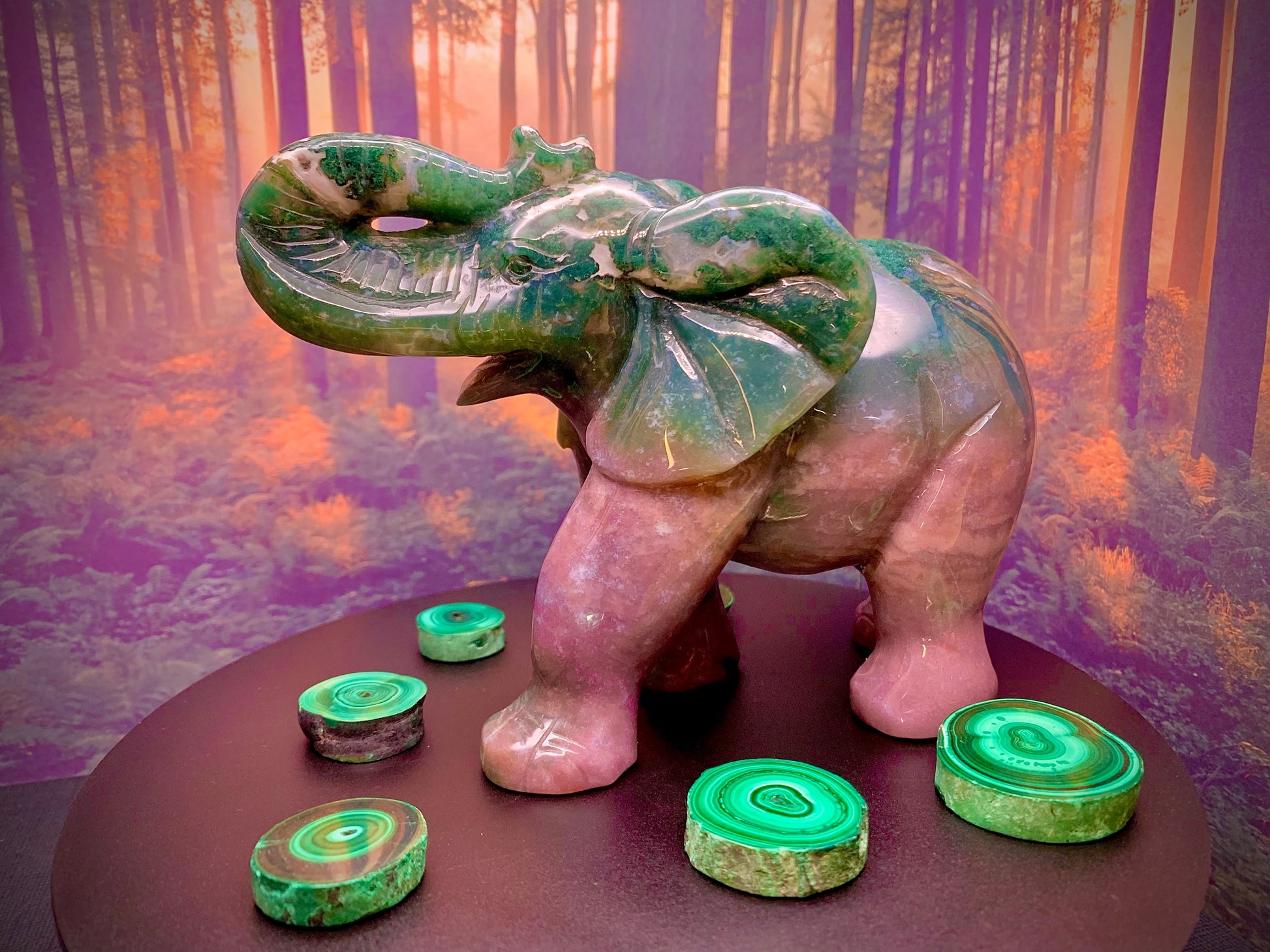 Watermelon Ocean Jasper Elephant Carving (Large) 🐘